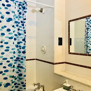 The rooms have a tub, a separate toilet and a shower.